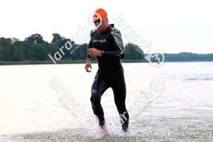 Prvně v životě nebylo plavání úplná tragédie. Začínal jsem v těsném háku a řešil jediné – udržet se. Dařilo se mi to zhruba kilometr, pak mi při rovnání čepičky tahoun bohužel zmizel a už jsem ho nenašel. Takže zbytek plus-mínus ze tří čtvrtin za své a ze čtvrtiny za náhodnými tahouny, kteří ale většinou moc kličkovali a tak jsem je opouštěl. První okruh jsem dokončil s mírnou rezervou za necelých 37 min, druhý už jsem rubal skoro „co to šlo“, ale i tak jsem vylézal z vody v relativně dobrém stavu.